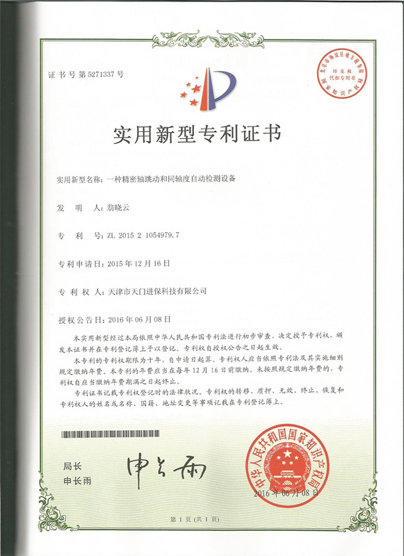 • 精密軸跳動自動檢測設備實用新型專利